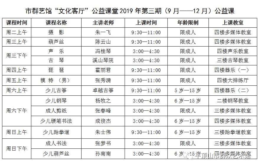 "文化客厅"公益课堂2019年第三期开始报名啦!