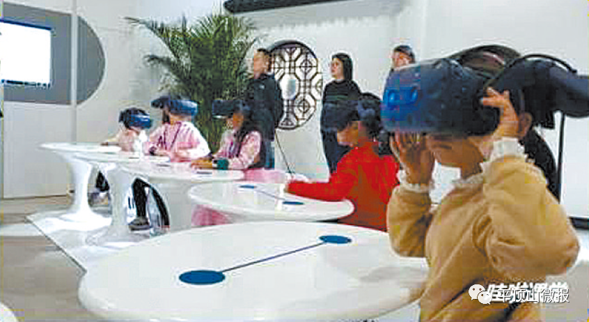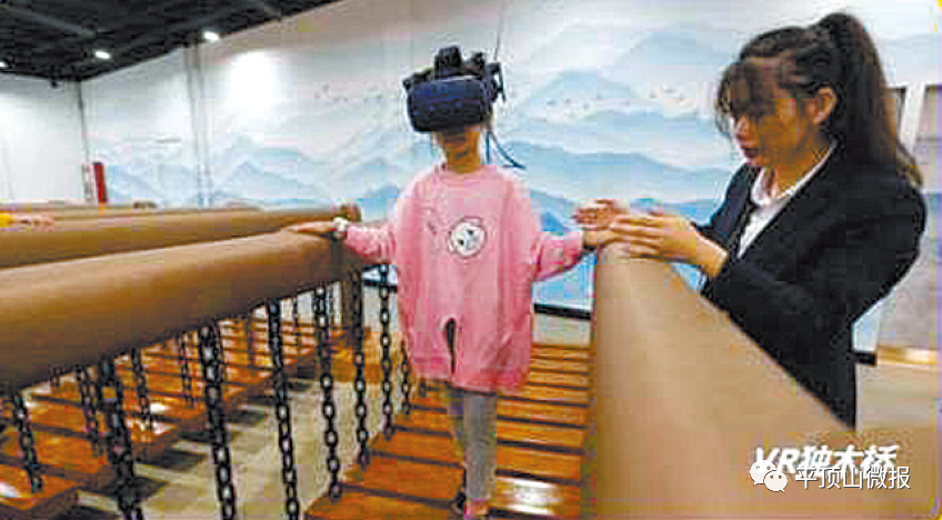 学生在VR教室上课,体验VR独木桥