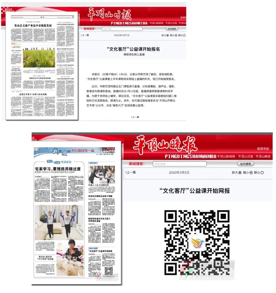 直播课程有:舞蹈、葫芦丝、摄影、普通话与朗诵和瑜伽;为便于老师线上辅导、课后交流,报名采取微信扫码进群的方式,五门课程全部满员,报名人数达2500人;开课一周受众人群达5万人次,群众好评如潮。