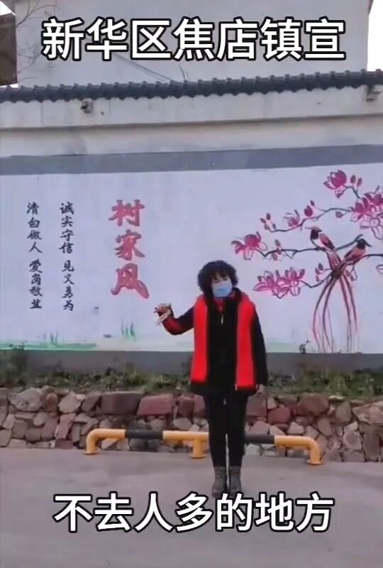 “国家有难,不能光看,病毒来侵,防治要紧;短信拜年,视频聊天,待在家里,不要乱转;亲戚不走,来年还有,朋友不聚,过后再叙……”一件印着“文化志愿者”字样的马夹、一副口罩、一个小广播,平顶山市新华区焦店镇文化宣传服务中心主任宗秀稳站在村口又进行疫情防控宣传了。