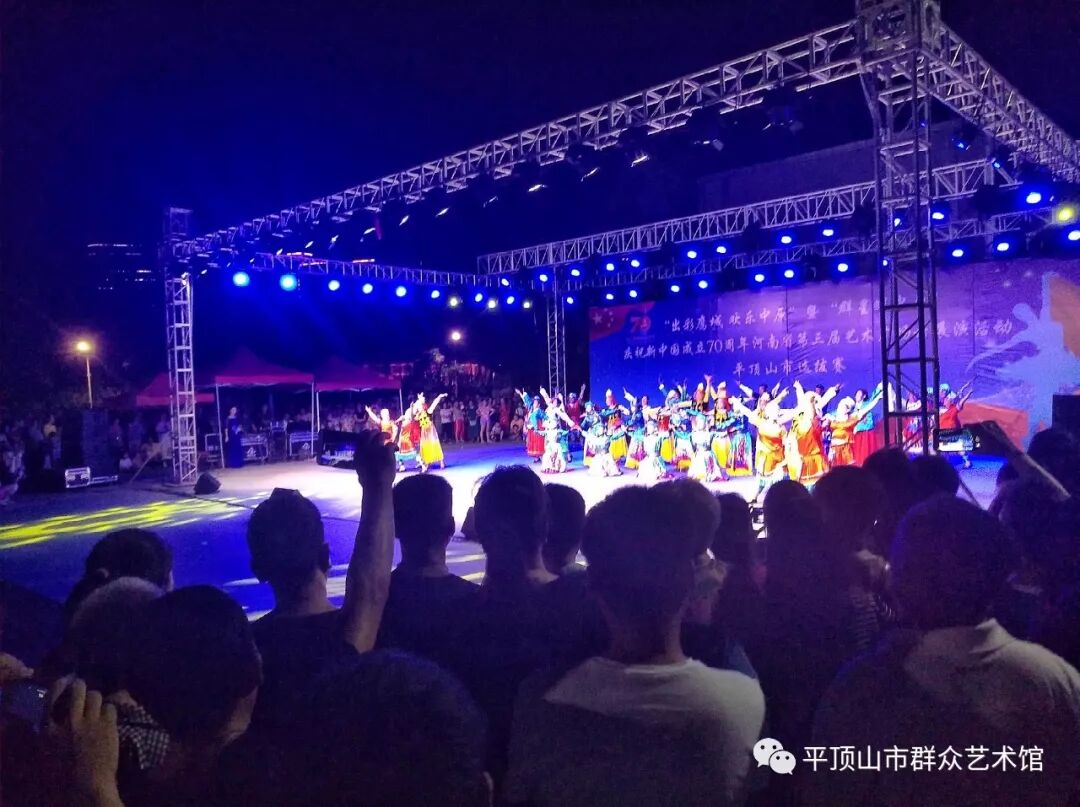 以文化人,以艺娱人,为深入学习贯彻习近平新时代中国特色社会主义思想和党的十九大精神,由河南省文化和旅游厅主办,河南省文化馆、平顶山市文化广电和旅游局承办,平顶山市群艺馆、平顶山市城乡一体化示范区社会事业发展局协办的“出彩鹰城 欢乐中原”暨“群星耀中原”庆祝新中国成立70周年河南省第三届艺术广场舞展演活动平顶山选拔赛8月10日晚在新城区音乐喷泉广场拉开了帷幕。