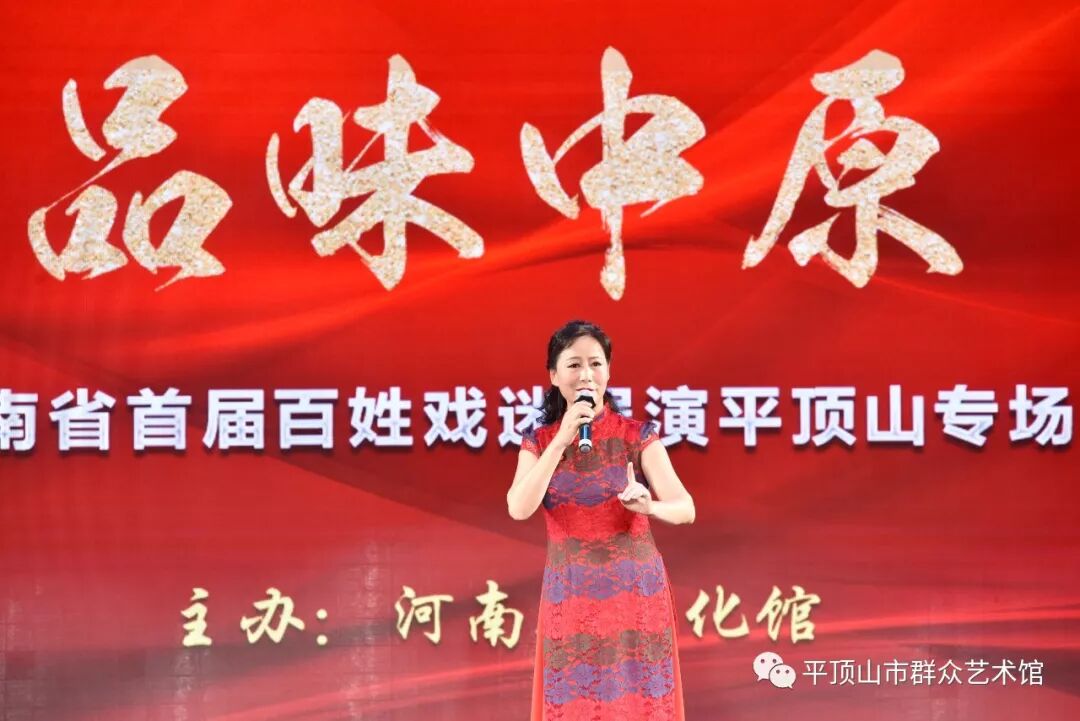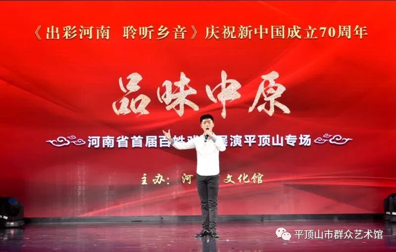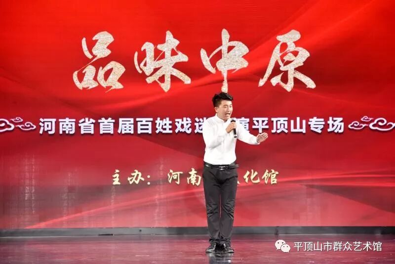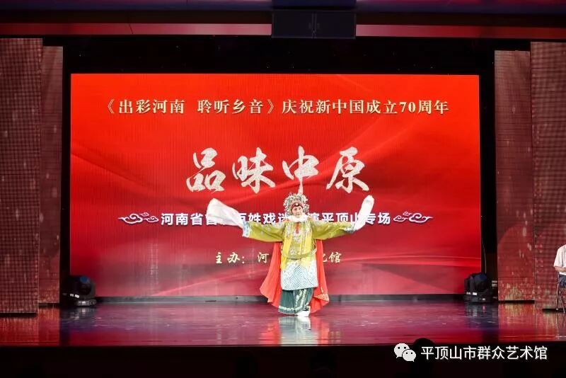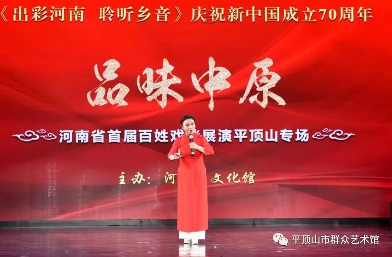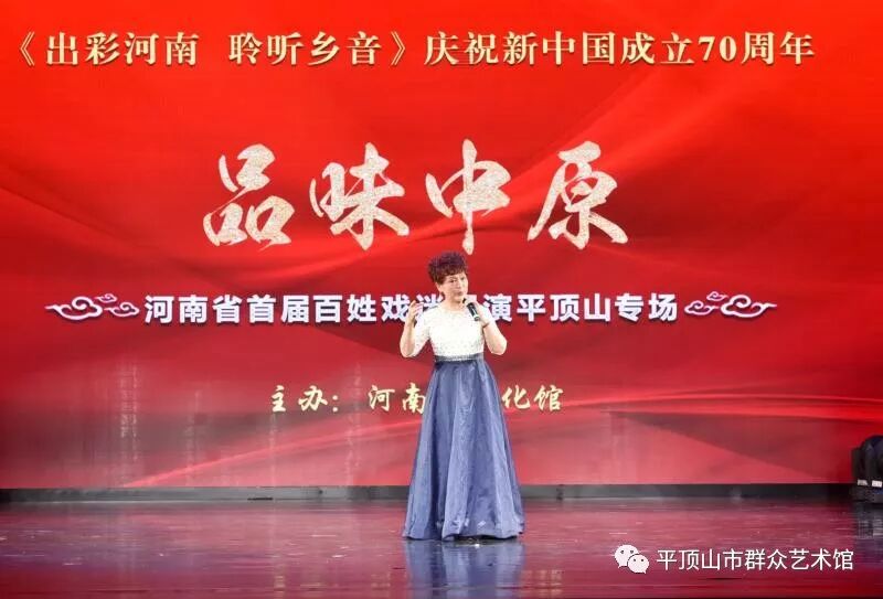 为深入贯彻落实习近平新时代中国特色社会主义思想和党的十九大精神,自觉承担举旗帜、聚民心、育新人、兴文化、展形象的使命任务,将“戏曲进乡村”“戏曲进校园”活动进一步推进,6月21日晚上七点半,由河南省文化和旅游厅指导、河南省文化馆主办的《出彩河南 聆听乡音》庆祝新中国成立70周年河南省首届群众戏迷展演平顶山专场火热开演。