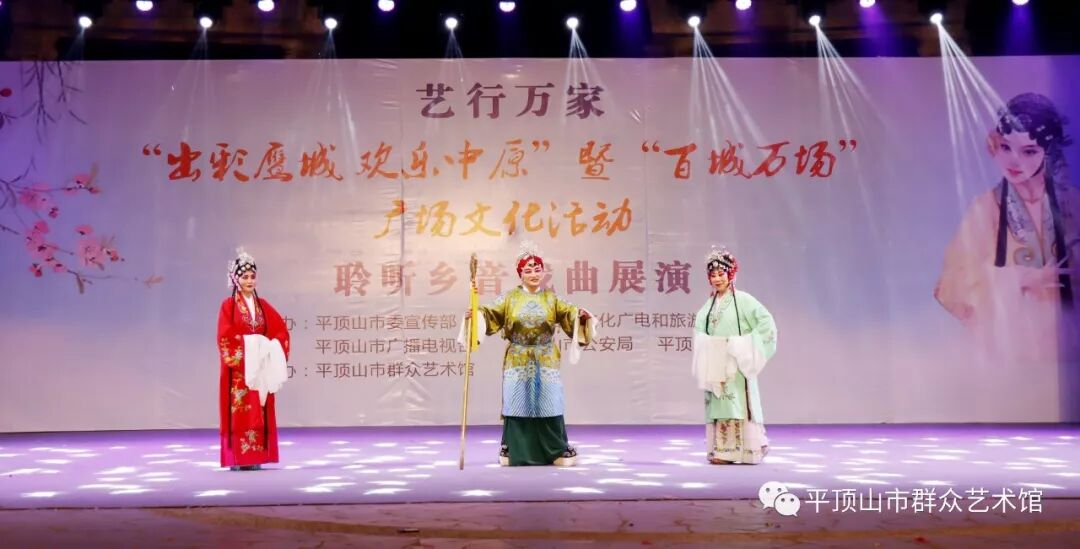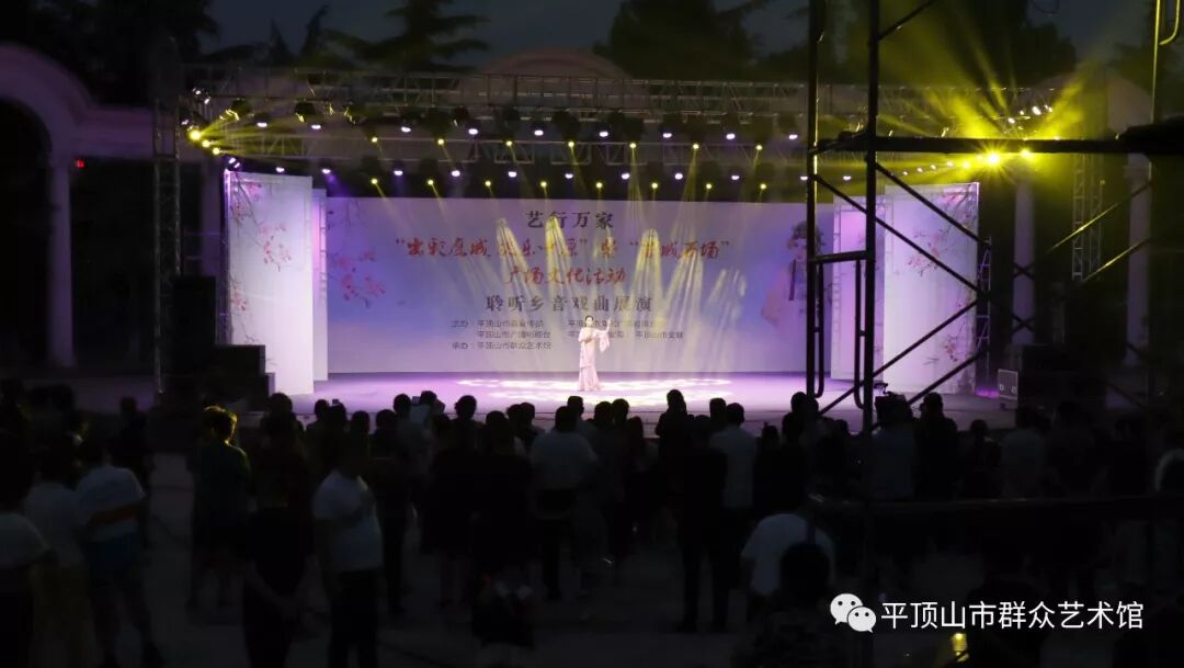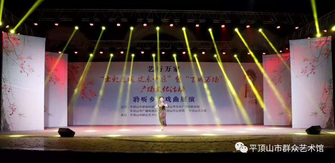 为深入贯彻落实习近平新时代中国特色社会主义思想和党的十九大精神,自觉承担举旗帜、聚民心、育新人、兴文化、展形象的使命任务,将“戏曲进乡村”“戏曲进校园”活动进一步推进。将文化惠民工程以群众文化品牌活动的方式加以呈现,由平顶山市委宣传部、平顶山市文化广电和旅游局、平顶山市广播电视台、平顶山市公安局、平顶山市文联主办,平顶山市群众艺术馆承办的艺行万家“出彩鹰城 欢乐中原”暨百城万场广场文化活动聆听乡音戏曲展演今晚在鹰城广场罗马剧场拉开了帷幕。