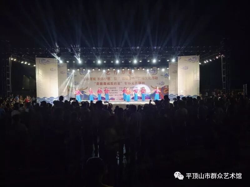 6月6日晚,由平顶山市委宣传部、平顶山市文化广电和旅游局、平顶山市广播电视台、平顶山市公安局、平顶山市文联主办,平顶山市群众艺术馆、平顶山市城乡一体化示范区社会事业发展局承办的艺行万家“出彩鹰城 欢乐中原”暨“百城万场”广场文化活动“美丽鹰城我的家”专场文艺演出和大家相约美丽的白龟湖畔。