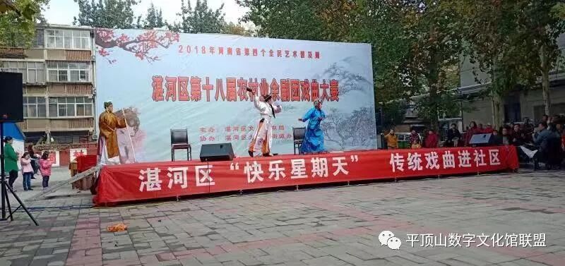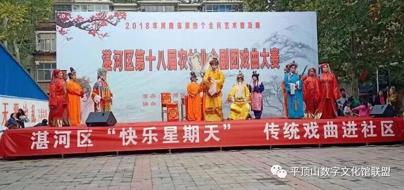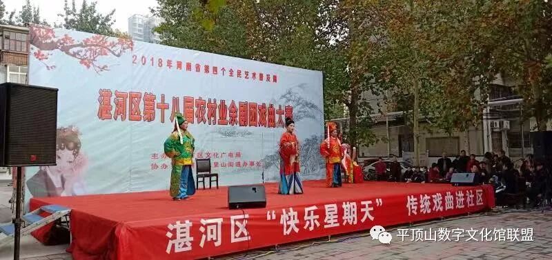 为庆祝改革开放40周年,深入学习宣传贯彻党的十九大及十九届二中、三中全会精神,丰富人民群众精神文化生活的需求,由湛河区文化广电局主办,九里山街道办事处协办的湛河区第十八届农村业余剧团戏曲大赛,于11月8日-10日,在九里山街道飞行社区隆重举行。