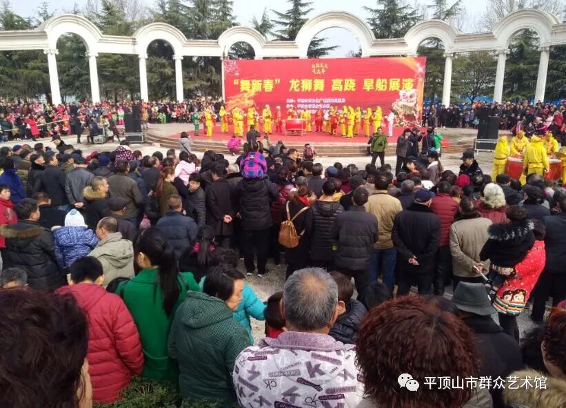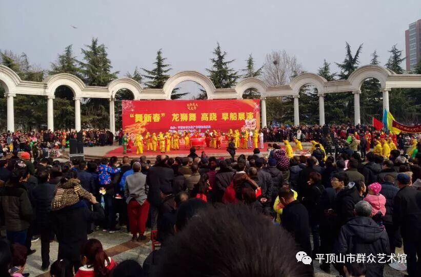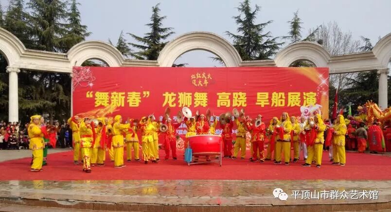 为丰富群众节日文化生活,营造团结奋进,欢乐喜庆,昂扬向上的节日氛围,3月2日,由平顶山市文化广电新闻出版局主办,平顶山市群众艺术馆、平顶山市非物质文化遗产保护中心承办的“舞新春”龙狮舞,高跷,旱船展演在鹰城广场罗马剧场喜庆开演。