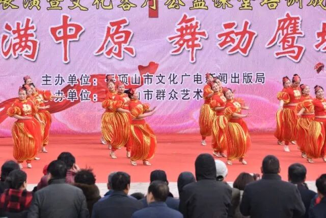 为丰富群众节日文化生活,营造团结奋进,欢乐喜庆,昂扬向上的节日氛围,2月24日,由平顶山市文化广电新闻出版局主办,平顶山市群众艺术馆承办的“春满中原 舞动鹰城”广场舞展演暨“文化客厅”公益课堂培训成果展在鹰城广场罗马剧场喜庆开舞。
